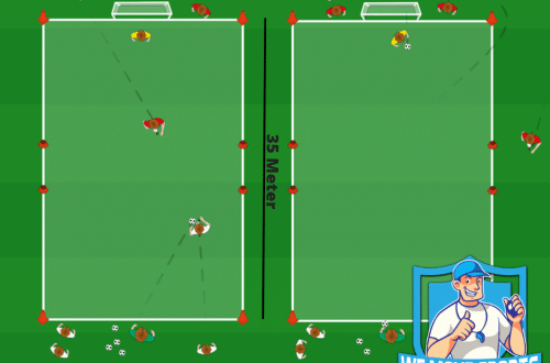 1 tegen 1 + Keeper met 1 pupillendoel en 2 mini doelen