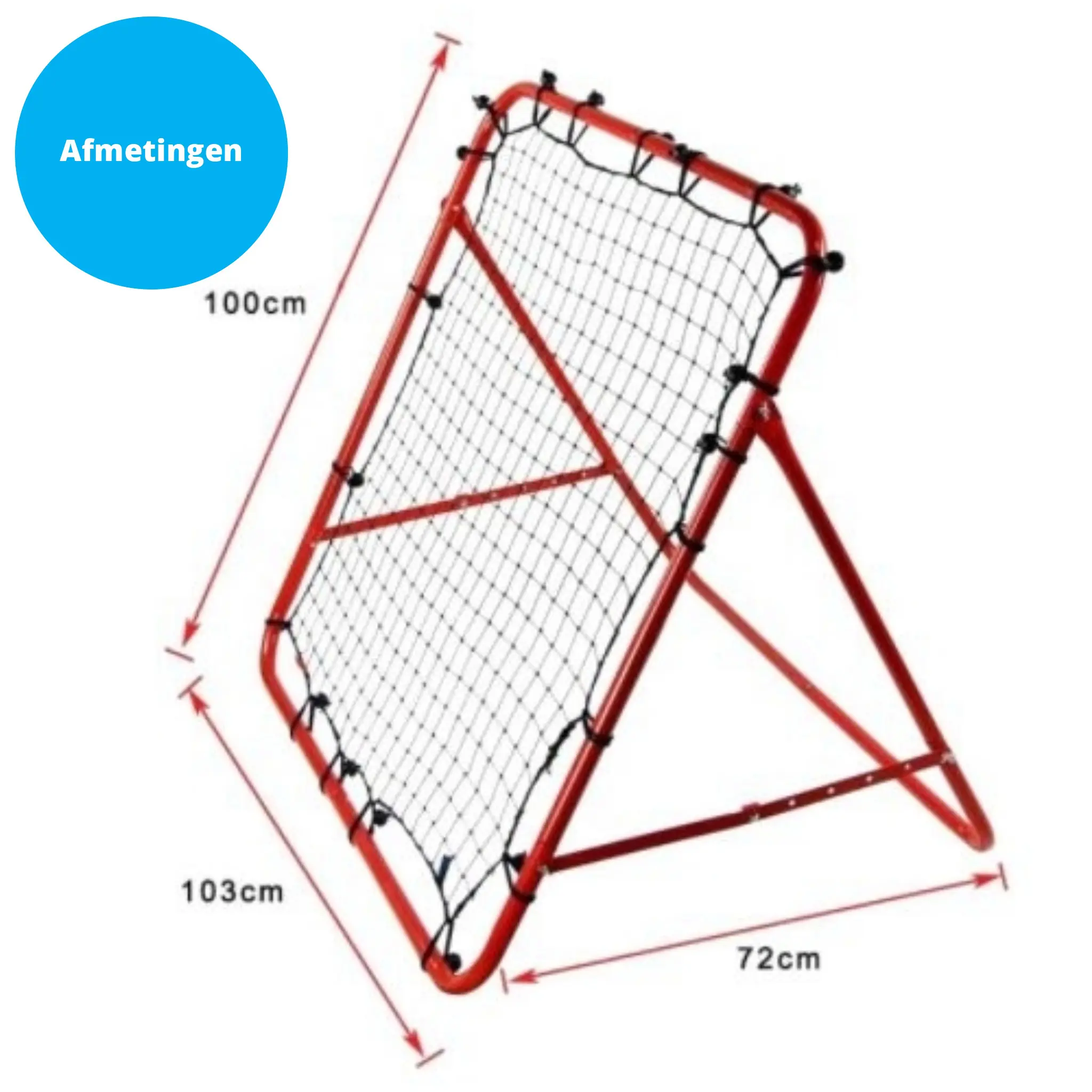 De rebounder voor het voetbal van metaal heeft een ideaal formaat waardoor het in iedere tuin geschikt is om te kunnen voetballen. Door het formaat is het doeltje niet alleen handig om te verplaatsen, maar ook de kinderen of spelers leren hierdoor nog beter voetballen. Een groot doel daagt uit tot hard schieten, terwijl een kleiner doel juist vraagt om techniek, vaardigheden en skills! Het doeltje is 100 cm breed x 100 cm hoog/diep aan de voorzijde x 72 cm diep.