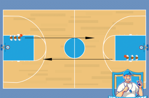 Download print PDF Lay ups over het hele veld O10 4 – 12 spelers 1/1 veld Spelbeschrijving De eerste speler vangt de bal vanaf het backboard en geeft een pass naar de volgende speler. Deze speler dribbelt naar de andere basket en maakt een layup. Na de layup vangt hij zijn eigen bal af en passt hem door naar de…